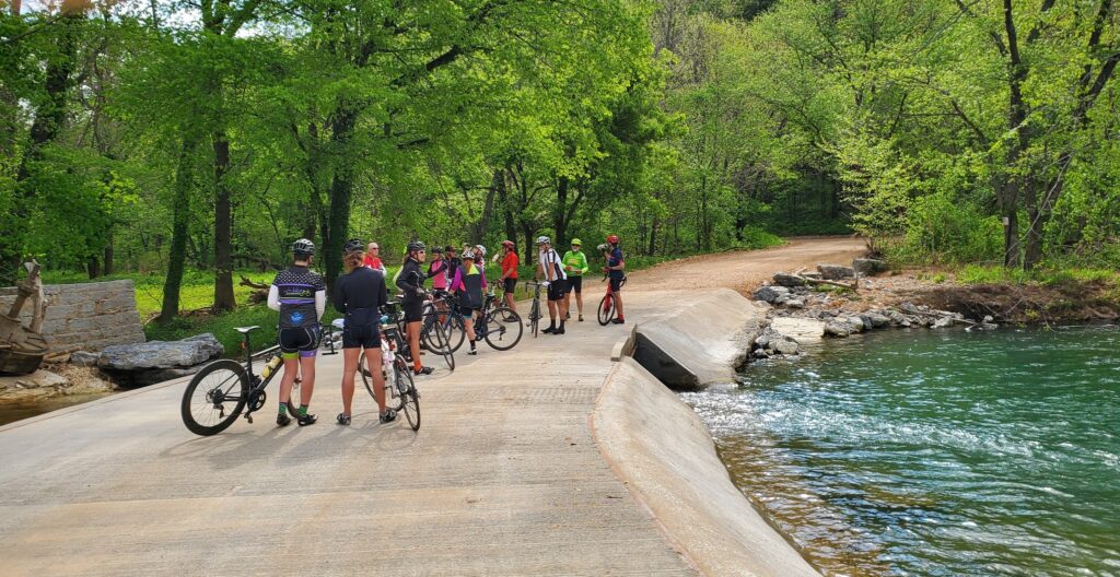 Group ride stopping at Cyclone in Missouri. (One of our favorites routes)